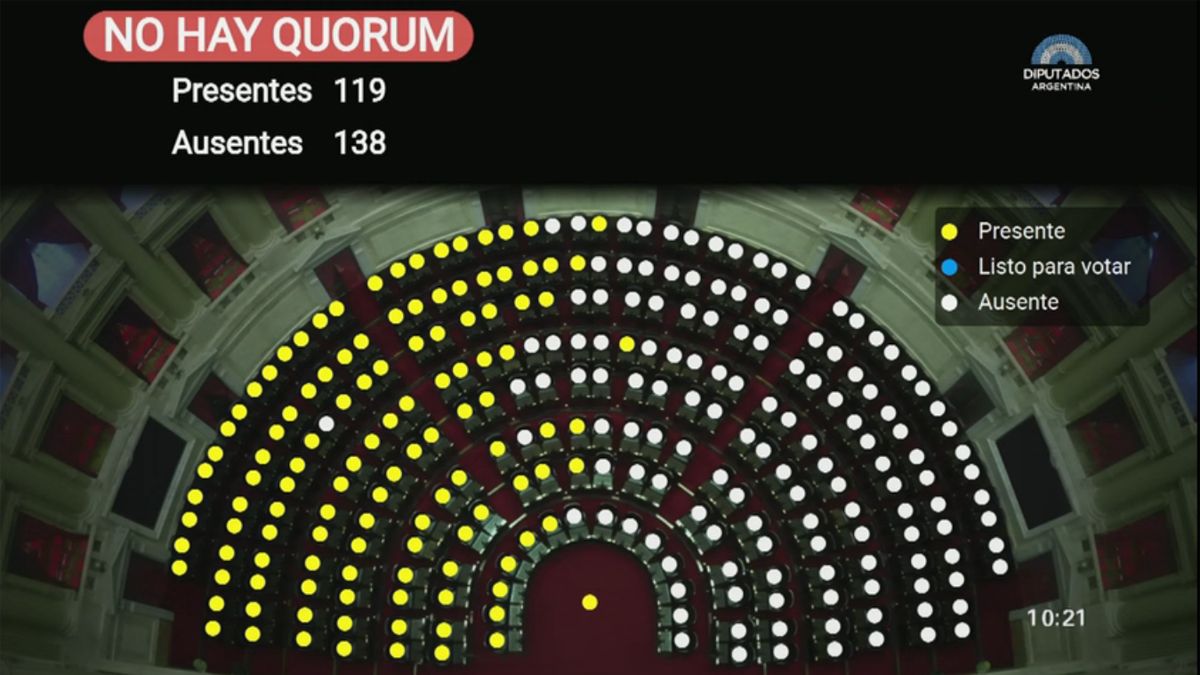 La alianza opositora no pudo conseguir la cantidad de legisladores necesarios para avanzar con la sesión especial.