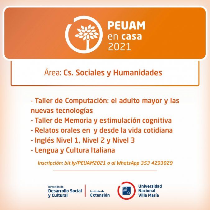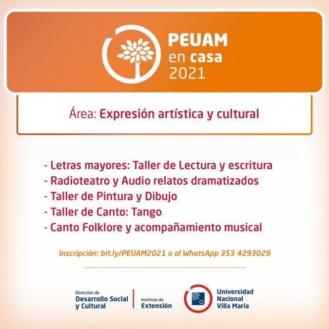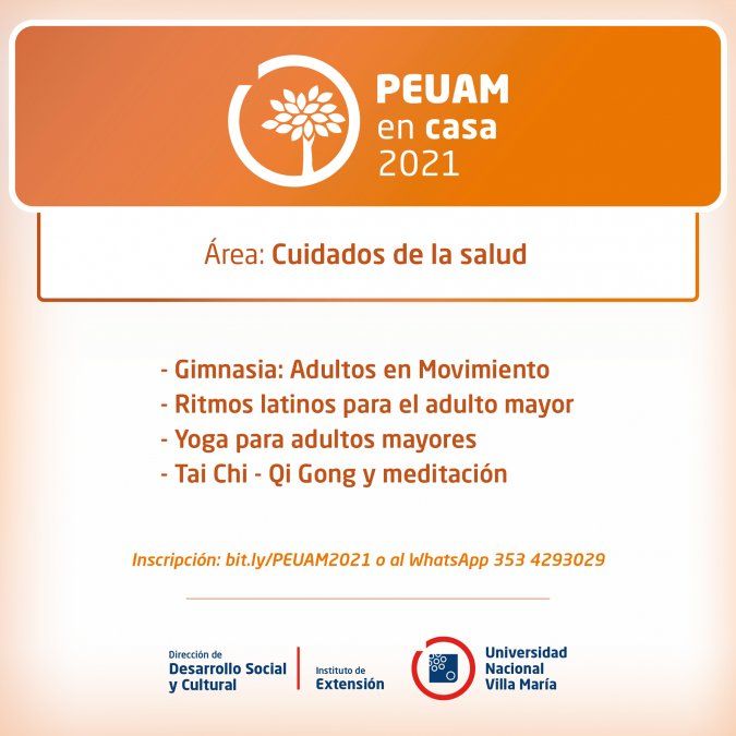 Como hace ya más de 20 años, el Programa de Extensión Universitaria para Adultos Mayores (PEUAM) perteneciente al Instituto de Extensión de la Universidad Nacional Villa María (UNVM), ofrece talleres innovadores que están relacionados a la educación, las expresiones artísticas y la salud.