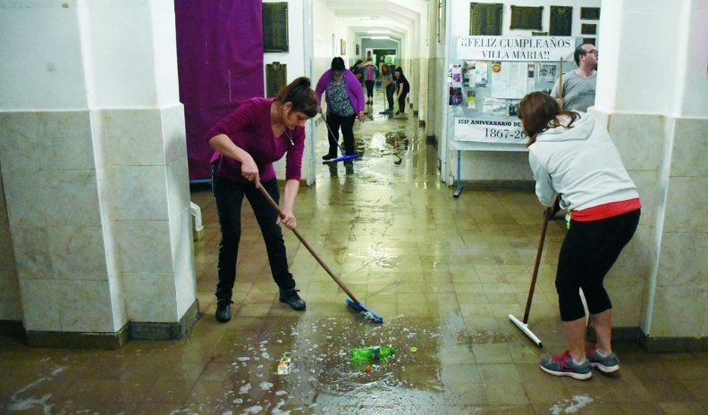 Los desagües no dieron a basto y el agua que no podía salir en dirección a la calle, terminó ingresando a la escuela. Con el fenómeno ya consumado, la dirección tomó la acertada decisión de postergar hasta el lunes el dictado de clases. Pero convocó a los docentes a un cambio de actividades.
