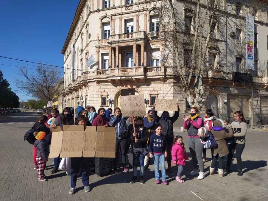 Familias que mantienen una toma de terrenos en un sitio prometido por el ejecutivo local, se manifestaron ayer frente al palacio municipal con la intención de ser escuchados y plantear la necesidad habitacional, como así también el cumplimiento de la promesa realizada por el mismo, ya que los vecinos firmaron un convenio hace aproximadamente seis años con el área de vivienda.