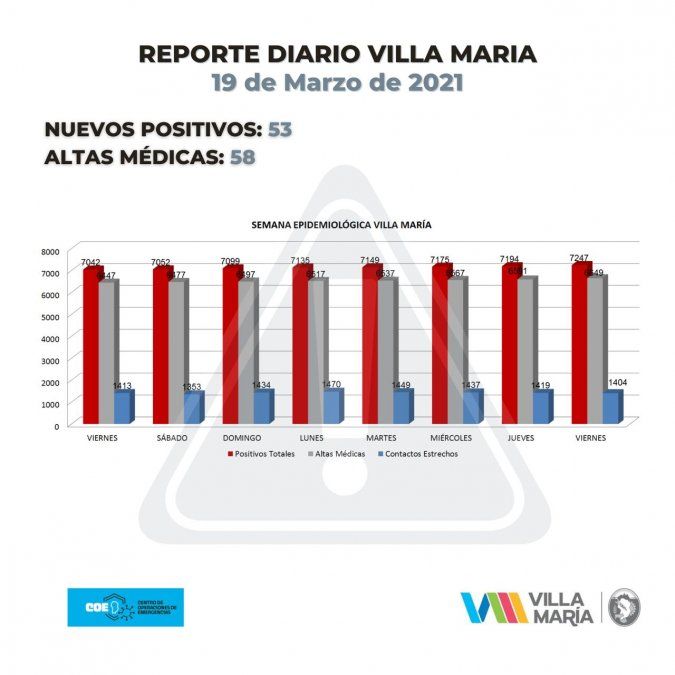 Hasta las 12 horas de este viernes, se registraron 53 nuevos casos de coronavirus y 58 altas médicas definitivas. De esta manera, los casos totales desde el inicio de la pandemia en la ciudad son 7.247, de los cuales 6.649 son personas que lograron recuperarse de la enfermedad.