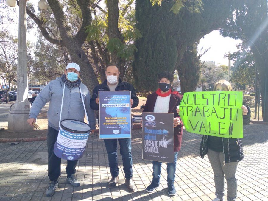 Trabajadores de la salud marcharon este jueves en la Plaza Centenario pidiendo mejoras salariales.