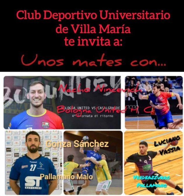Son exjugadores de Cief, Alianza Villa María Handball y Alta Gracia Handball. El fin es una charla distendida para que cuenten qué los llevó a emigrar al Viejo Continente y su realidad deportiva en estos momentos, entre otras cosas.