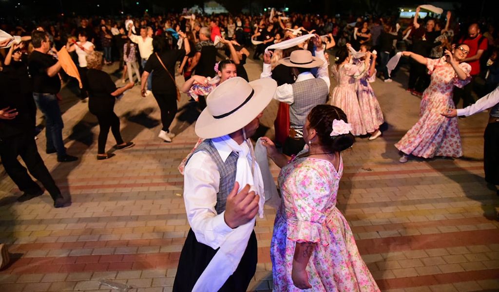 Desde las 18, agrupaciones de danza folclórica de la ciudad ocuparon el espacio central (frente al escenario) para mostrar sus variadas propuestas. Se presentaron el Grupo Juvenil Ateneo y “Sueños de Tradición” (agrupación de danza dirigida por Mariana Pedernera). También llegaron hasta el pulmón verde de barrio Almirante Brown algunos integrantes del Programa de Extensión Universitaria para Adultos Mayores (Peuam).