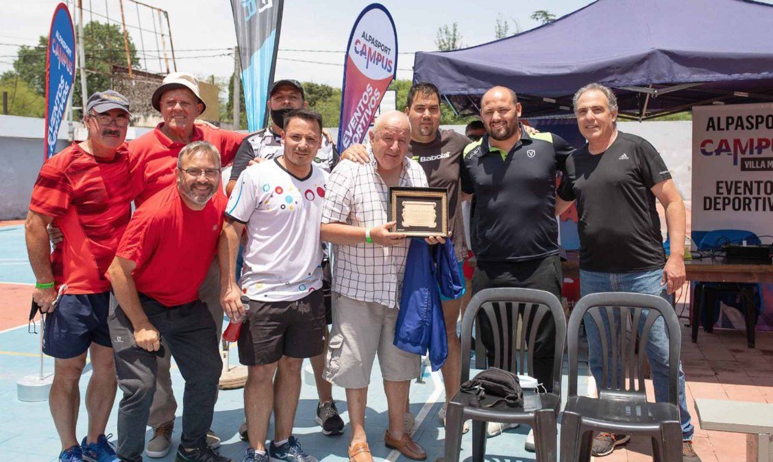 En la ocasión, la organización aprovechó para rendirle homenaje a un histórico jugador de frontón del “rojo” de Avenida Costanera: Raúl “Cacho” Sáenz.