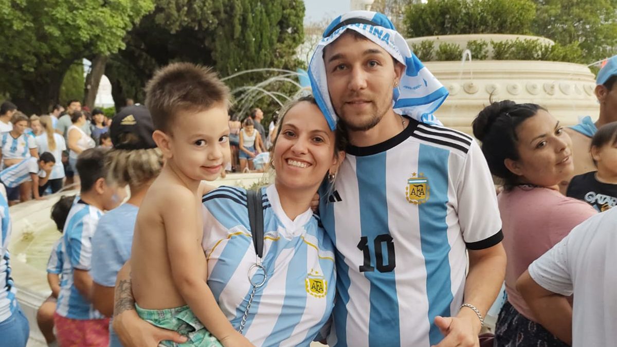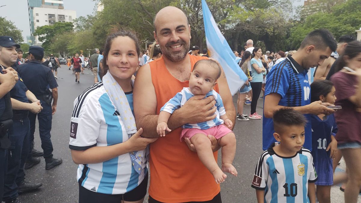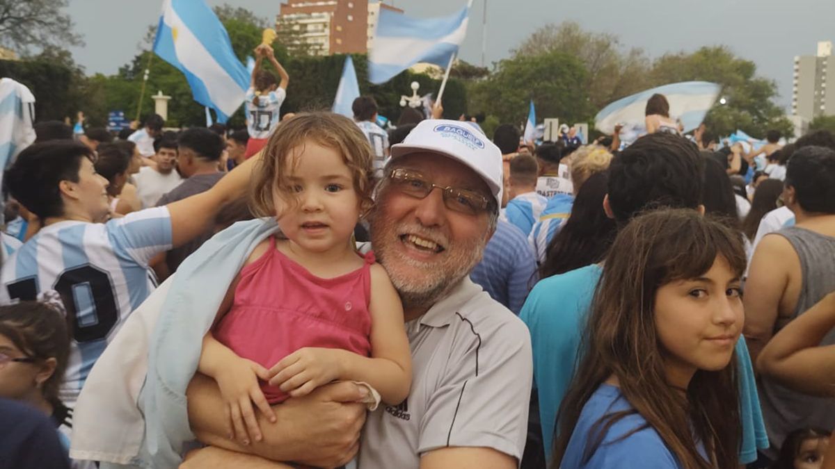 Daniel Barrera, llegó a los festejos con su nieta Josefina: “Vimos el partido con toda la familia, sufrimos mucho pero estamos todos festejando este gran triunfo de la selección. En el empate nos tiramos al suelo a llorar, no lo podíamos creer. Ahora el martes nos volvemos a juntar”.