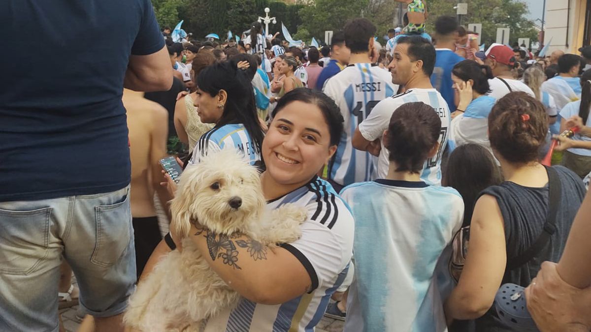 En el mismo sentido, Martina Casas llegó a la Plaza Centenario con su perrita “Mía”: Siempre vemos el partido juntas, es la primera vez que la traigo a la plaza, sufrimos mucho y ahora estamos muy felices”.