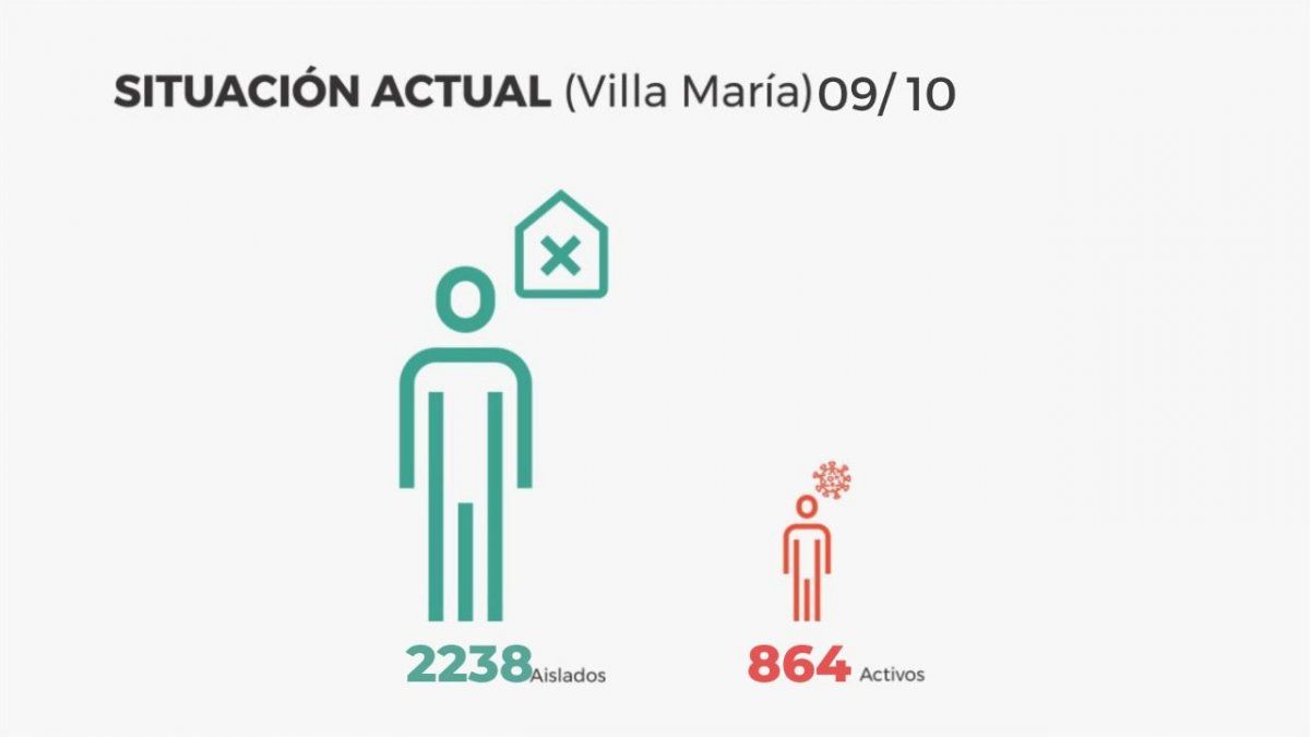 Con los datos actualizados, Villa María acumula un total de 864 casos activos, mientras en aislamiento se encuentran 2238 personas