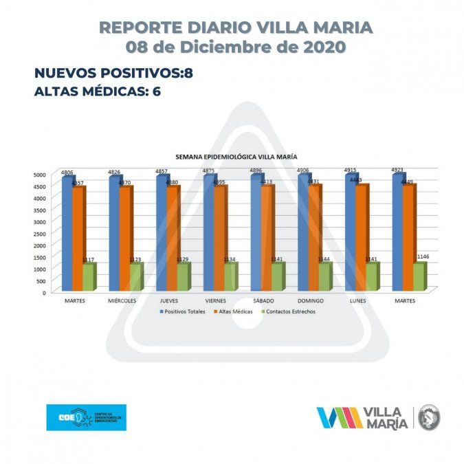 En las últimas 24 horas, Villa María registró 8 nuevos casos de coronavirus y 6 altas médicas