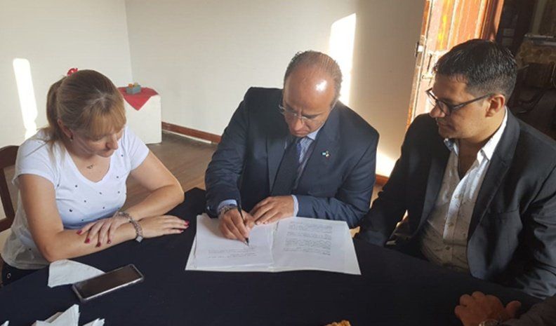 La firma del convenio se concretó en la Casa de la Cultura de Villa Nueva y la encabezó el intendente Natalio Graglia junto a su secretaria de Cultura y Educación Marcela Unzueta.
