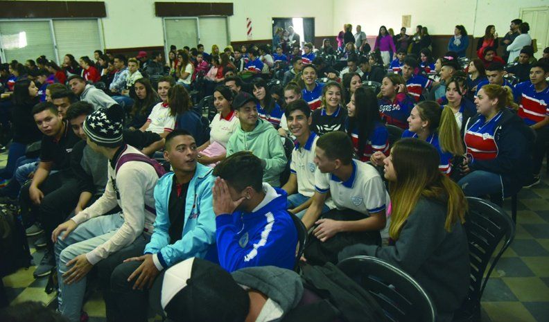 La actividad se concretó en el salón del Club Alem, de Villa Nueva, que lució colmado de estudiantes.