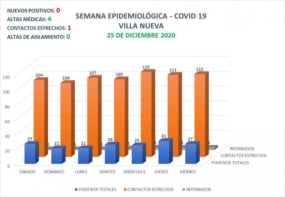 En las últimas 24 horas no se registraron casos positivos de coronavirus en Villa Nueva, en tanto que se registraron 4 altas médicas y no se otorgaron altas de aislamiento.