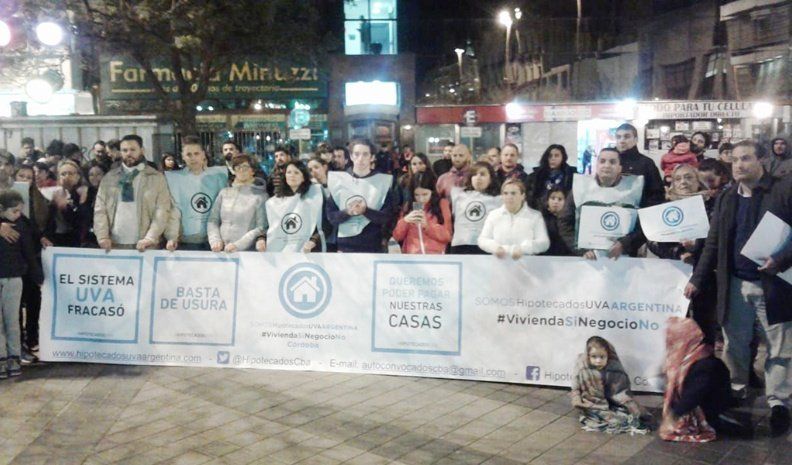 La Plaza San Martín fue el espacio para la convocatoria de Hipotecados UVA Autoconvocados. Pasadas las 19 del lunes, más de un centenar de afectados de diferentes localidades de la provincia se reunieron para dar visibilidad a la problemática.