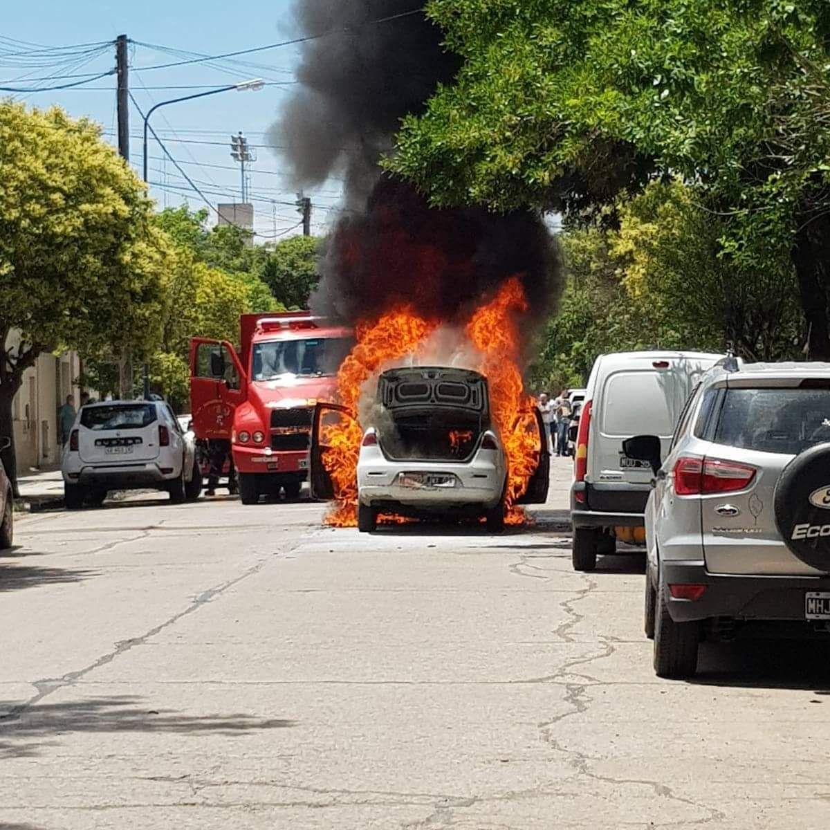 Las llamas se apoderaron de toda la carrocería. El auto sufrió importantes daños materiales